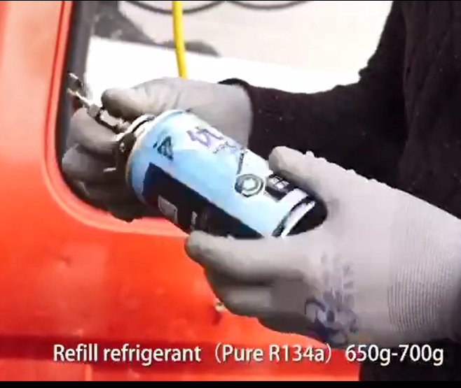 - condenser unit mounting :drill screw hole on cab, place the unit and fix it with screw
